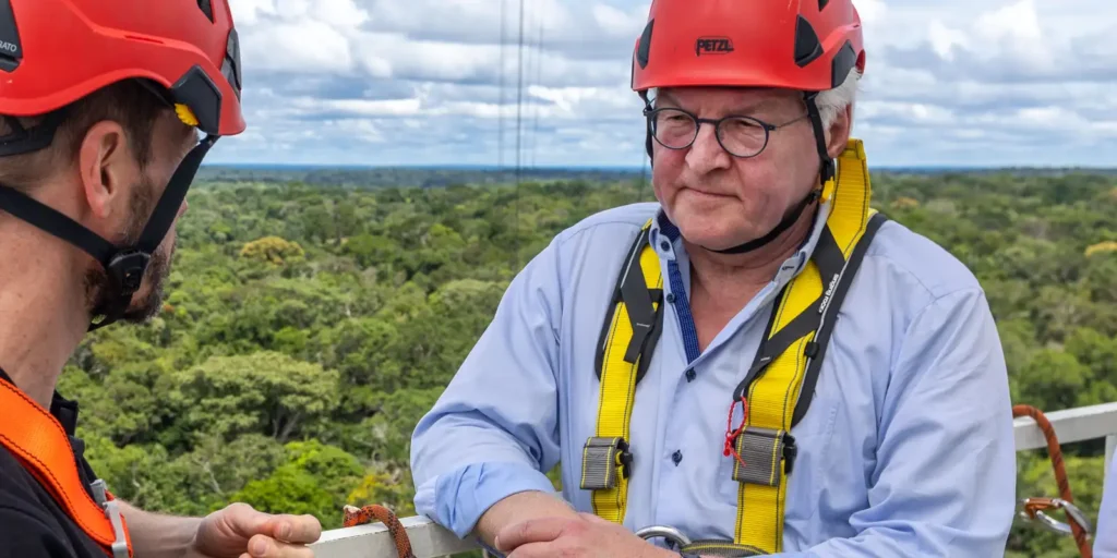 Steinmeier se desplazó al estado de Amazonas para conocer los proyectos y acciones financiados por el gobierno alemán. Visitó la Torre Atto, en São Sebastião do Uatumã, que vigila el clima de la región y forma parte de un proyecto coordinado por investigadores de Brasil y Alemania.