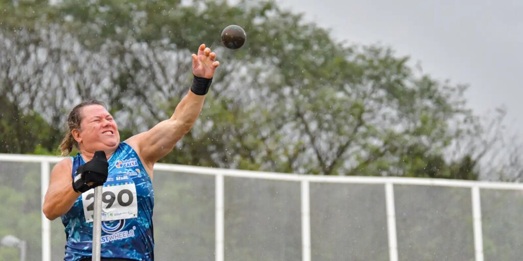 A multicampeã paralímpica brasileira Beth Gomes, de 58 anos, voltou a quebrar seu próprio recorde mundial no arremesso de peso da classe F53 (cadeirantes) ao obter a marca de 7,16 metros de distância. A façanha ocorreu nesta quinta-feira (15) na abertura do Campeonato Brasileiro Loterias Caixa de atletismo, no Centro de Treinamento Paralíimpico (CTP), em São Paulo. A competição é preparatória para o Mundial de Atletismo, de 8 a 17 de julho, em Paris (França). ![]()