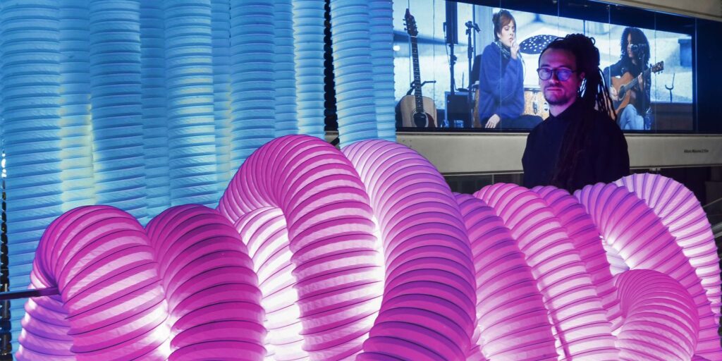 “It’s a large installation in the shape of a waterfall built with digital leds and translucent tubes. It’s a tribute to one of nature’s greatest assets, water. What I’m bringing to the city is water in one of its most powerful formats, the waterfall. At first its appeal lies in its beauty, but the concept shifts our gaze toward how we should preserve this precious resource and how we’ve been treating it,” Vigas said.