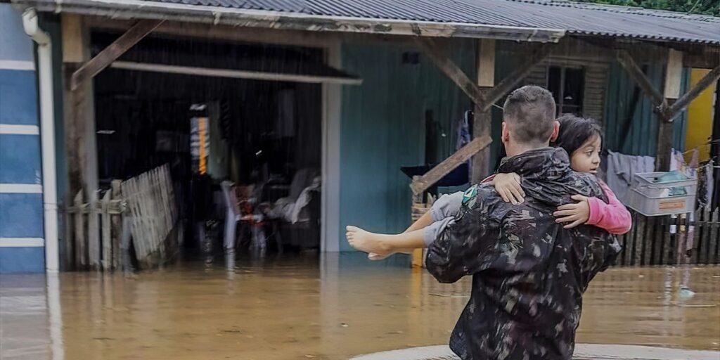 Según el informe, se estima que 122.992 personas se vieron afectadas de alguna manera por las fuertes lluvias provocadas por el paso de un ciclón extratropical por la región sur de Brasil. Las personas sin hogar rondan las 10 mil.