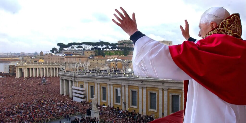 Joseph Ratzinger assumiu o pontificado após a morte de João Paulo II. Alemão da cidade de Marktl am Imm, ele abdicou em 2013. Foi o primeiro pontífice a renunciar ao posto desde Gregório XII no século 15. Substituído pelo Papa Francisco, passou então a ter o título de papa emérito.