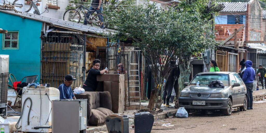 Este sábado (18) começou sem chuva e com sol em Porto Alegre. A água das ruas já baixou em boa parte da zona sul da cidade. Foi a senha para quem foi atingido começar a limpeza das casas. No bairro Menino Deus, as calçadas ficaram cheias de móveis, colchões, eletrodomésticos, livros e todo o tipo de objeto que algum dia já teve valor, mas que agora vai para o lixo.