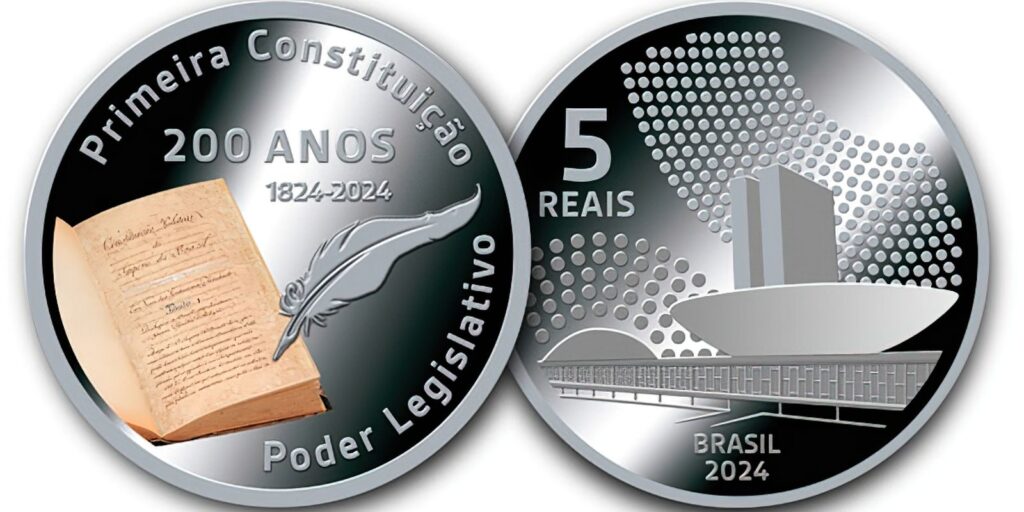 Os colecionadores poderão comprar, a partir desta sexta-feira (24), a moeda em comemoração aos 200 anos da primeira Constituição brasileira. O Banco Central (BC) libera novo lote de 4 mil peças. Produzida em prata, a moeda terá valor de face de R$ 5, mas será vendida por R$ 440.