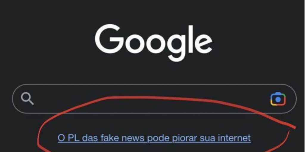 Nesta segunda-feira (1º), o Google fixou em sua página oficial um link com uma mensagem dizendo que “o PL das Fake News pode aumentar a confusão sobre o que é verdade ou mentira no Brasil”. Ao clicar, o usuário é remetido a um texto do diretor de Relações Governamentais e Políticas Públicas do Google Brasil, Marcelo Lacerda, com críticas ao projeto.