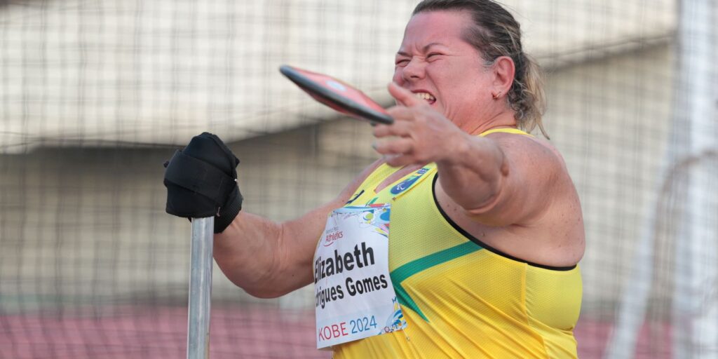 A exatos 100 dias da abertura da Paralimpíada de Paris, o atletismo paralímpico brasileiro assegurou mais quatro medalhas de ouro no Mundial, que ocorre até sábado (25) da modalidade em Kobe (Japão). Nesta segunda-feira (20), a recordista mundial Beth Gomes fez valer seu favoritismo: conquistou o tricampeonato mundial no lançamento de disco F53 (atletas que competem sentados). Quem também festejou o tri foi o mineiro Claudiney Batista no lançamento de disco F56 (atletas sentados). Os outros dois ouros foram da maranhense Rayane Santos nos 200 metros T13 (deficiência visual) e da paulista Júlio Agripino, nos 5.000 da classe T11 (deficiência visual).