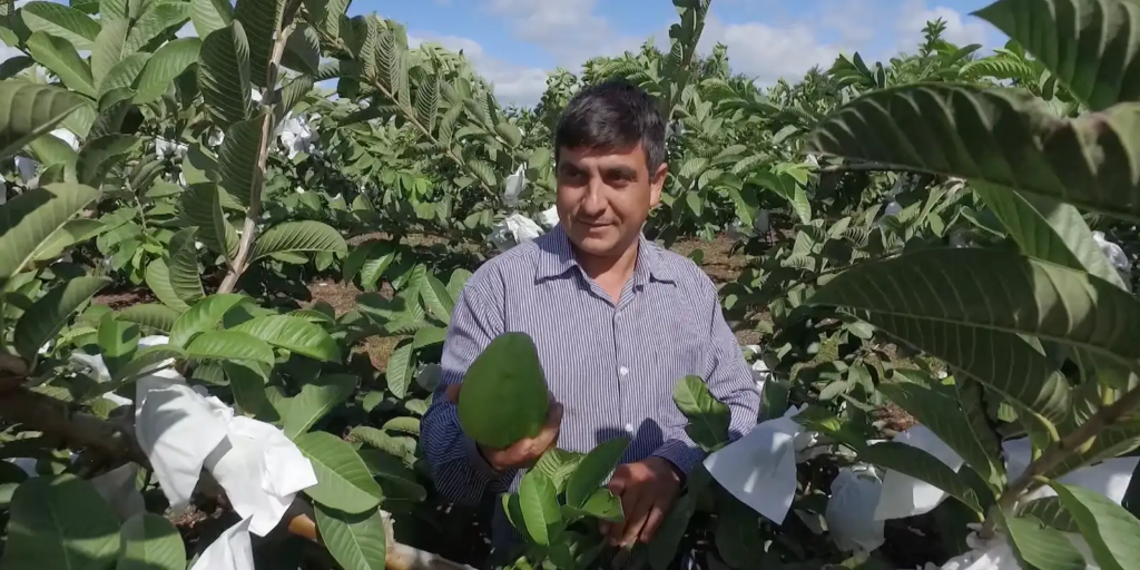 “Ela tem uma casca mais grossa que permite um transporte maior, melhor comercialização, o espaço dela na gôndola do mercado, faz com ela resiste mais”, explica o produtor certificado Rodrigo Viana. Ele diz que a variedade de goiaba cultivada nessa IG pode pesar em média 500 gramas ou mais e que, devido ao tamanho, é considerada uma goiaba de mesa.