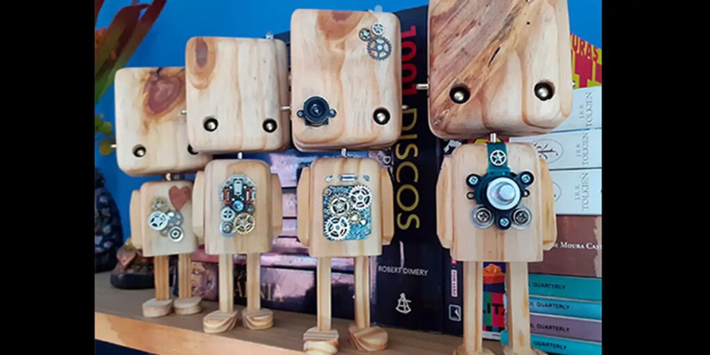 O artesão Allan Borges foi selecionado em edital e participou da Rio Artes de 2023. Ele trabalha com esculturas feitas de madeira de reaproveitamento e utiliza sucata de eletrônicos, como placas e fios, por exemplo. “O meu trabalho é todo voltado para a sustentabilidade. O material que eu uso, basicamente, coleto na rua”, disse à Agência Brasil.
