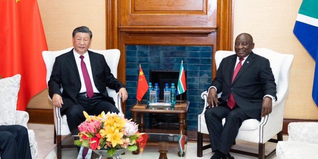 Ramaphosa disse que os países do Sul Global, incluindo a África do Sul, esperam fortalecer a solidariedade e a cooperação com a China para juntos enfrentarem melhor os desafios e promoverem o estabelecimento de uma ordem internacional mais equitativa, justa e racional.