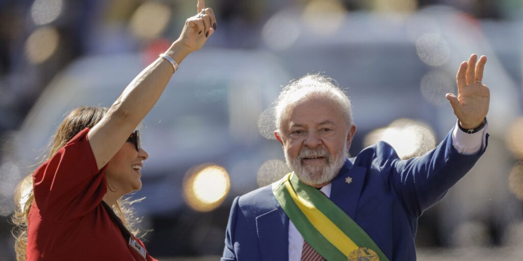No anexo do Palácio do Planalto, o presidente Lula passou em revista a tropa e, na sequência, seguiu no Rolls-Royce presidencial, acompanhado da primeira-dama, a socióloga Rosângela da Silva, a Janja, até a tribuna de honra montada entre os prédios dos ministérios da Defesa e de Minas e Energia e Turismo, onde havia cerca de 200 convidados.