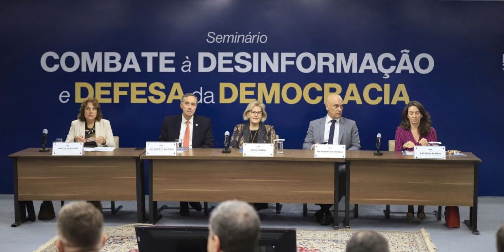 O seminário Combate à Desinformação e Defesa da Democracia é promovido pelo STF em parceria com universidades públicas. O evento, organizado no âmbito do Programa de Combate à Desinformação, continua amanhã (15), reunindo ministros, academia e representantes da sociedade civil.