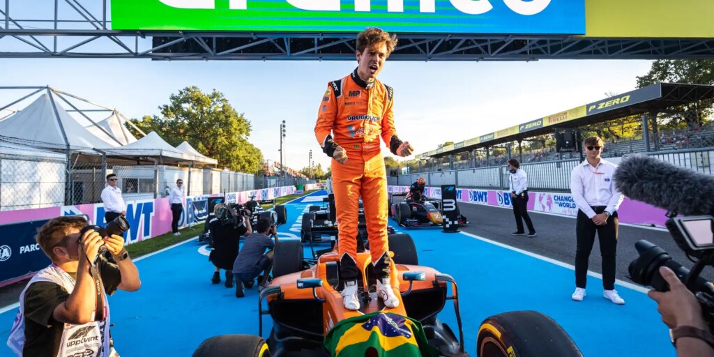A uma semana do início da temporada de Fórmula 1, o brasileiro Felipe Drugovich se vê mais próximo de estrear na principal categoria do automobilismo mundial. Neste domingo (26), a Aston Martin confirmou, em comunicado nas redes sociais, que o piloto de 22 anos, campeão da Fórmula 2 em 2022, correrá o Grande Prêmio (GP) do Bahrein, no próximo domingo (5), caso o titular Lance Stroll não se recupere a tempo, depois de fraturar os punhos em um acidente de bicicleta no último dia 20.![]()