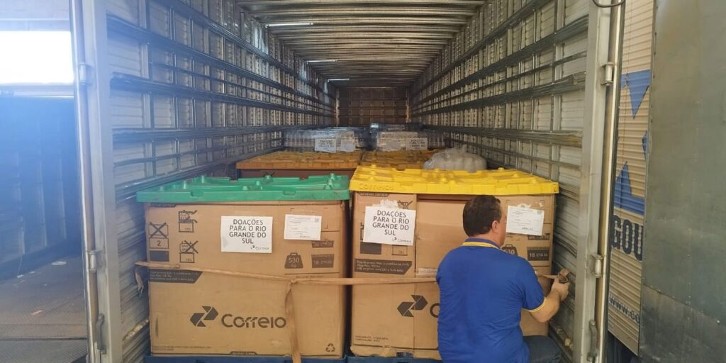 O presidente da instituição anunciou a ampliação da capacidade de armazenamento de carga no estado gaúcho. “Conseguimos parcerias com empresas para utilizar estruturas da iniciativa privada para poder fazer esse armazenamento de mercadorias”, complementou. O presidente dos Correios estima que a pretensão é ampliar a rede para trazer 500 toneladas de doações por dia ao Rio Grande do Sul.