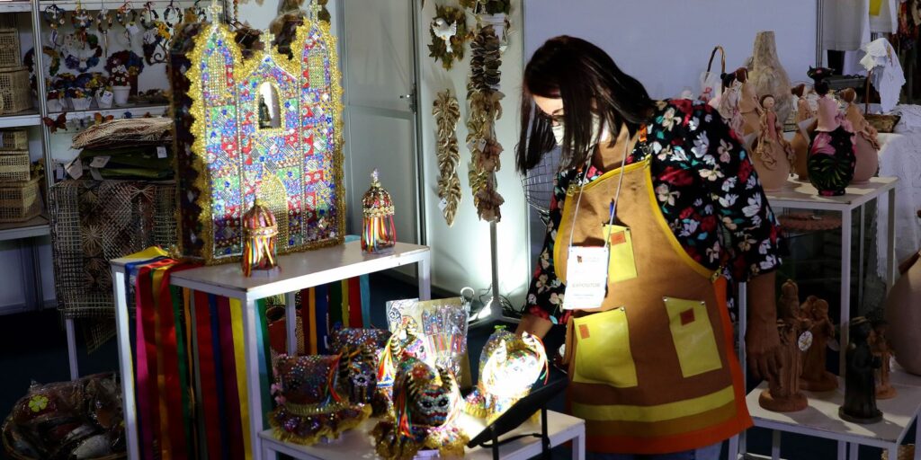 “As pessoas estão comprando um pouco menos de antes da pandemia, porém mais do que estavam comprando no ano passado, mas entendemos que o momento financeiro não é o mesmo. Percebemos que o setor não perdeu o encantamento. Sabemos que o artesanato não é um item de primeira necessidade, a gente sempre teve essa realidade. Então, como profissionais, reinventamos nosso produto para que as pessoas falem: não é o que preciso, mas é um produto que me encanta, então eu quero ter esse produto!”, afirma a artesã Edna de Souza Machado Simão, de 52 anos, que também é professora de artesanato e educadora popular.