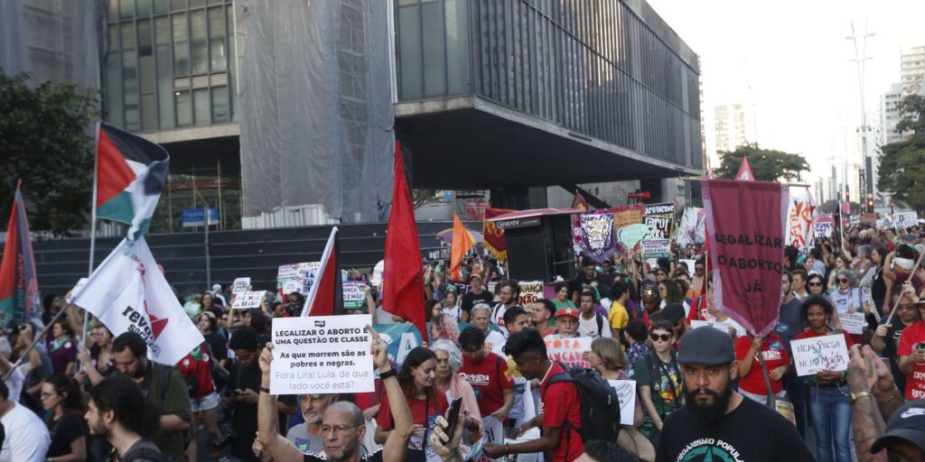 Cientos de manifestantes se reunieron en la playa de Copacabana el domingo (23) para pedir el archivo inmediato del proyecto de ley 1904/24, que equipara el aborto de más de 22 semanas de gestación con el asesinato, duplicando los actuales 10 años como pena máxima para quienes se sometan al procedimiento.