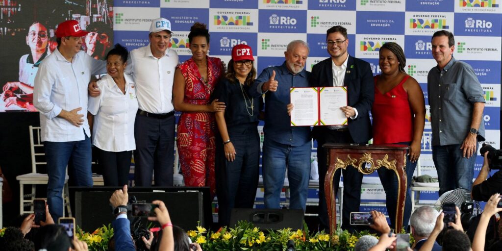 Acompanhado de ministros, o presidente Luiz Inácio Lula da Silva cumpriu, terça e quarta-feira (6 e 7), uma série de agendas na área de educação no Rio de Janeiro e na Baixada Fluminense. Entre os principais anúncios feitos pelo presidente estão a construção de três campi do Instituto Federal do Rio de Janeiro (IFRJ). Os institutos são promessa do presidente e demanda antiga das comunidades, que apostam no investimento em educação para capacitar os jovens e contribuir para o crescimento local.