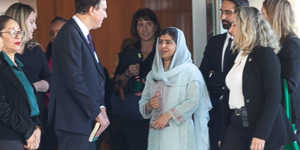 A vencedora do Prêmio Nobel da Paz, Malala Yousafzai, defendeu uma educação mais inclusiva em reunião com ministros brasileiros em Brasília, nesta quinta-feira (25).![]()