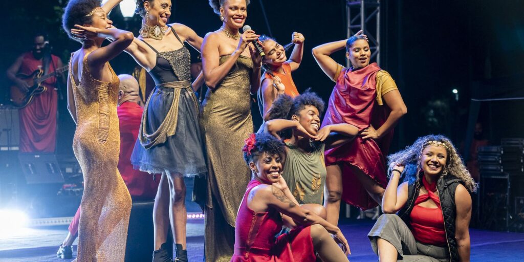 “O nome protagonista está no plural porque cada artista tem o seu momento de protagonismo no espetáculo, com as músicas autorais da própria banda, que toca ao vivo, e as ações circenses que se dão dentro de uma narrativa que fala de amor na comunidade preta, de cabelo da pessoa preta, do quilombismo, do genocídio. São situações implícitas, onde a plateia percebe e acompanha essa celebração circense no picadeiro”, afirmou Rodrigues.