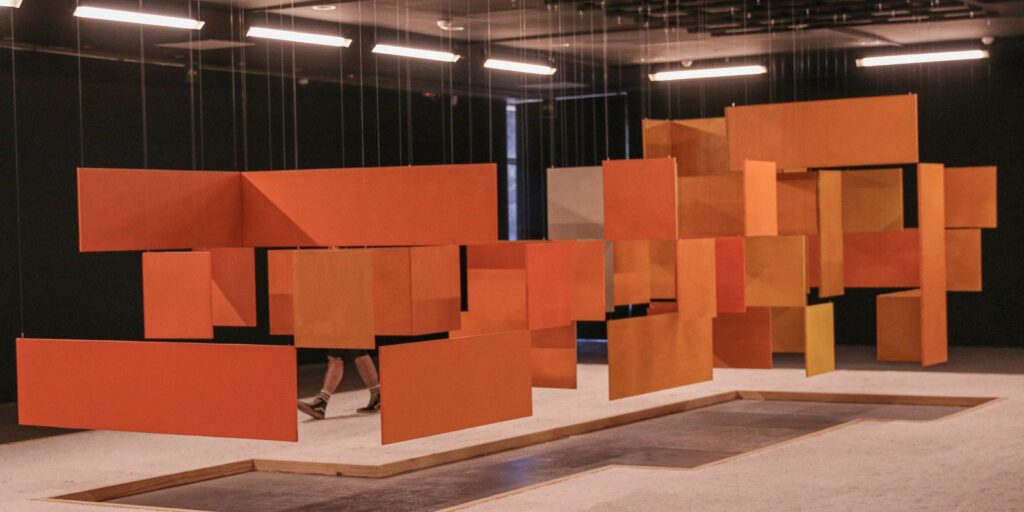 “Gradualmente, esto evolucionó hacia obras fragmentadas, primero como dibujos sobre papel, y luego transformadas en objetos que ocupan el espacio e invitan a la interacción. Las personas se convierten en parte integrante de las obras”, ejemplifica.