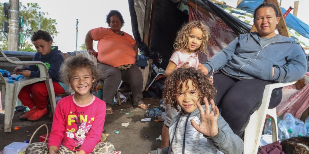O barulho e o movimento de veículos em alta velocidade na pista são intensos. Sem renda por não poder trabalhar na reciclagem, Hariana Pereira, 30 anos, o marido e os quatro filhos agora dormem no furgão antes usado para transportar os materiais coletados.
