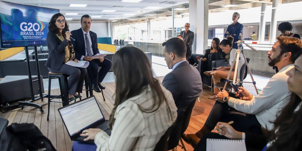 O grupo de trabalho ainda enfatizou o enfrentamento das mudanças climáticas globais como um dos desafios para vencer a insegurança alimentar e nutricional. O coordenador do GT da Agricultura do G20, Roberto Perosa, sinalizou que o governo brasileiro está atento aos eventos climáticos cada vez mais severos e seus impactos e que tem trabalhado para diminuir os efeitos na produção brasileira. “Estamos finalizando um robusto plano safra, com seguro rural já pensando em como a gente pode estabelecer novas metodologias para garantir a produção nesses locais e acompanhando de perto os efeitos climáticos do El Niño e La Niña para que a gente possa mitigar os efeitos na produção brasileira”.