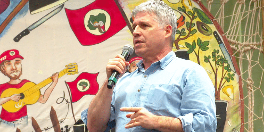 Acompanhado por representantes de vários órgãos federais e por lideranças de movimentos sociais, o ministro elogiou a atuação do MST, afirmando que o movimento “produz comida saudável e igualdade social” em um país que, segundo ele, deixou de colher alimentos para a população a fim de produzir commodities agrícolas vendidas a outros países.