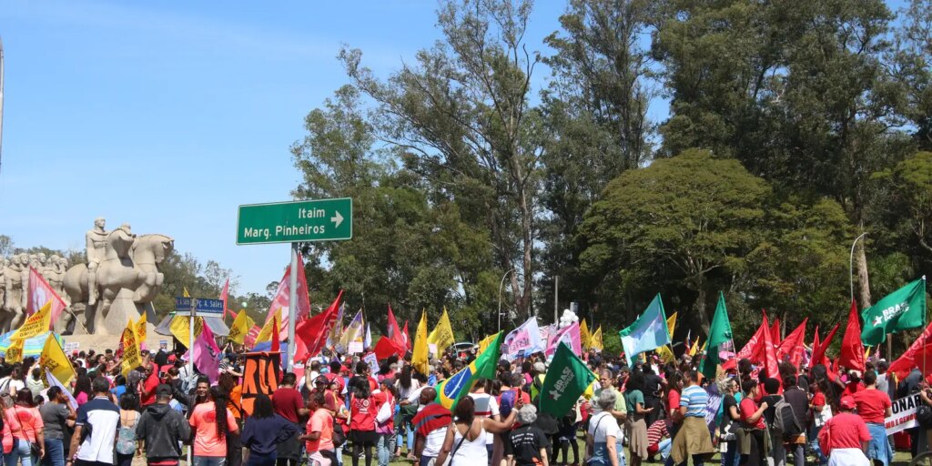 Nessa primeira hora, uma liderança mencionou, ao microfone, durante seu discurso, que o protesto deixou de ser feito nos últimos dois anos. O motivo, enfatizou, foi “a violência, a intimidação”, sugerindo que o clima de animosidade contra os movimentos populares foi estimulado pelo governo de Jair Bolsonaro.