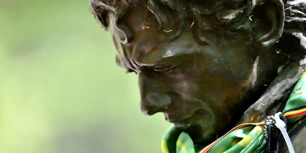 Estátua do piloto Ayrton Senna, em tamanho real, instalada no calçadão de Copacabana – Fernando Frazão/Agência Brasil