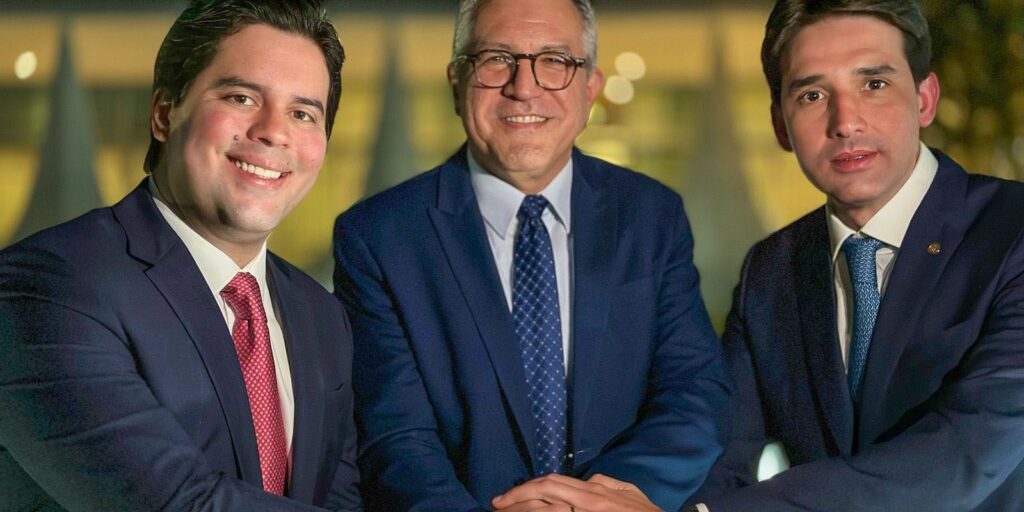Brasília (DF) – Novos ministros André Fufuca (esquerda) e Silvio Costa Filho (direita) com o ministro Alexandre Padilha (centro) – Foto: Ricardo Stuckert/PR
