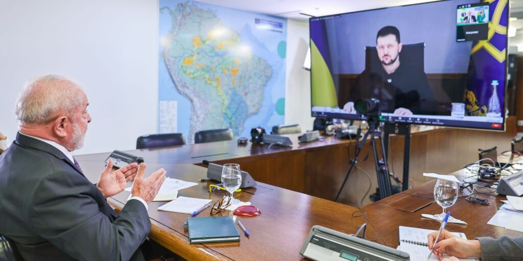 “Tive uma reunião por vídeo agora com o presidente da Ucrânia, Zelensky. Reafirmei o desejo do Brasil de conversar com outros países e participar de qualquer iniciativa em torno da construção da paz e do diálogo. A guerra não pode interessar a ninguém”, escreveu o líder brasileiro.