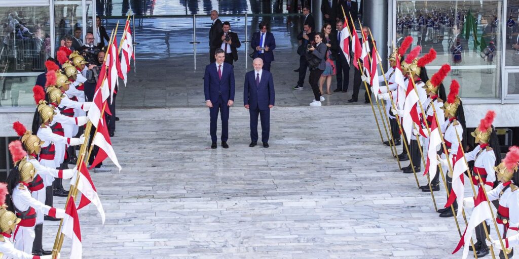 Lula deu declaração à imprensa, no Palácio do Planalto, ao lado do presidente da Espanha, Pedro Sánchez, que está em visita oficial ao Brasil.