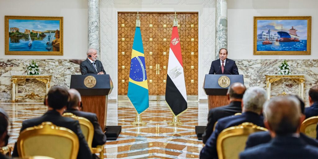 Em declaração à imprensa, após encontro com o presidente do Egito, Abdel Fattah Al-Sisi, Lula disse que Brasil e Egito são importantes em seus continentes e não podem ter uma relação pequena. “A nossa relação tem que ser muito forte, muito grande, e envolver todas as atividades possíveis, da agricultura à defesa, da economia à ciência e tecnologia, da nossa relação conjunta para tentar democratizar o funcionamento das Nações Unidas, no campo da educação, no campo da cultura”, disse.