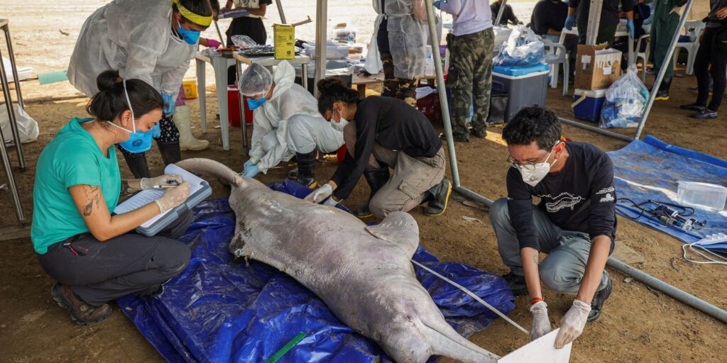 A mobilização, iniciada no final de semana, ocorreu após a morte de mais de 100 mamíferos aquáticos, como os botos vermelho e o tucuxi, que viviam no local.
