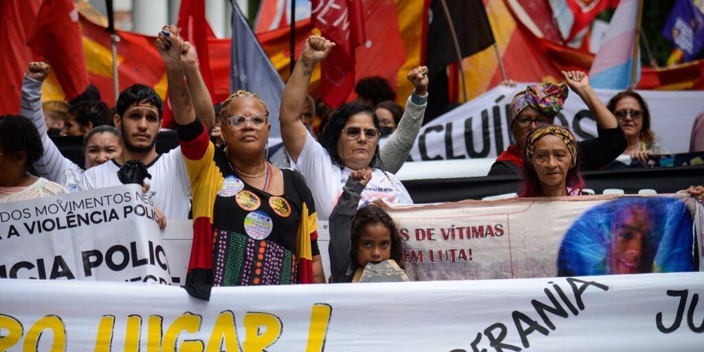 Entre os temas lembrados pelos manifestantes, bandeiras como a defesa do Sistema Único de Saúde (SUS), direitos de povos indígenas, igualdade racial, direito à moradia, trabalho digno e educação. Houve espaço também para críticas ao governador do Rio de Janeiro, Claudio Castro, por causa de operações policiais em favelas, e ao ex-presidente Jair Bolsonaro.