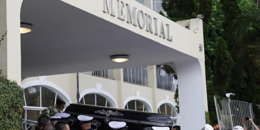 O corpo do Rei do Futebol, Pelé, foi sepultado na tarde desta terça-feira (3) no Memorial Necrópole Ecumênica, em Santos, em uma cerimônia reservada que contou apenas com a presença de familiares e amigos próximos.![]()