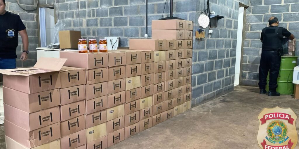 Para enganar os consumidores, o grupo chegava a acrescentar favos de mel verdadeiros em algumas embalagens. Foto: Polícia Federal – Polícia Federal