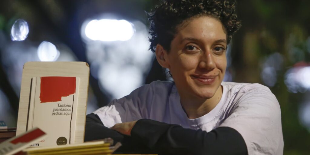Foi na praça ao lado da Estação Guilhermina do Metrô, na zona leste paulistana, que Luiza Romão começou a declamar versos em público. Ali, acontece desde 2012, toda última sexta-feira do mês, a batalha de rimas conhecida como Slam da Guilhermina. Agora, dez anos depois desse encontro com a poesia falada, a autora retornou ao espaço para fazer um dos eventos de lançamento de Também Guardamos Pedras Aqui, seu livro que venceu o último Prêmio Jabuti.![]()