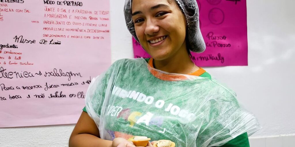“Me senti muito acolhida e fui gostando cada vez mais das aulas, com os psicólogos, fui saindo do sedentarismo, criando novos hábitos e conhecimentos. Hoje sou salgadeira, amo culinária. O projeto tem me ajudado bastante, tanto psicologicamente, como fisicamente, com os esportes oferecidos saí da obesidade e do sedentarismo, agora sou apaixonada por esporte e sou saudável”, conta Nayane, de 23 anos.