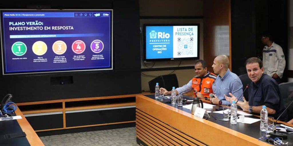 A prefeitura do Rio de Janeiro anunciou, nesta quinta-feira (16), detalhes no Plano Verão 2023/24, que reúne uma série de medidas para evitar e/ou minimizar efeitos de temporais. Uma das principais preocupações das autoridades municipais é a combinação entre mudanças climáticas e as consequências do fenômeno climático El Niño – aquecimento anormal das águas da porção leste da região equatorial do Oceano Pacífico.