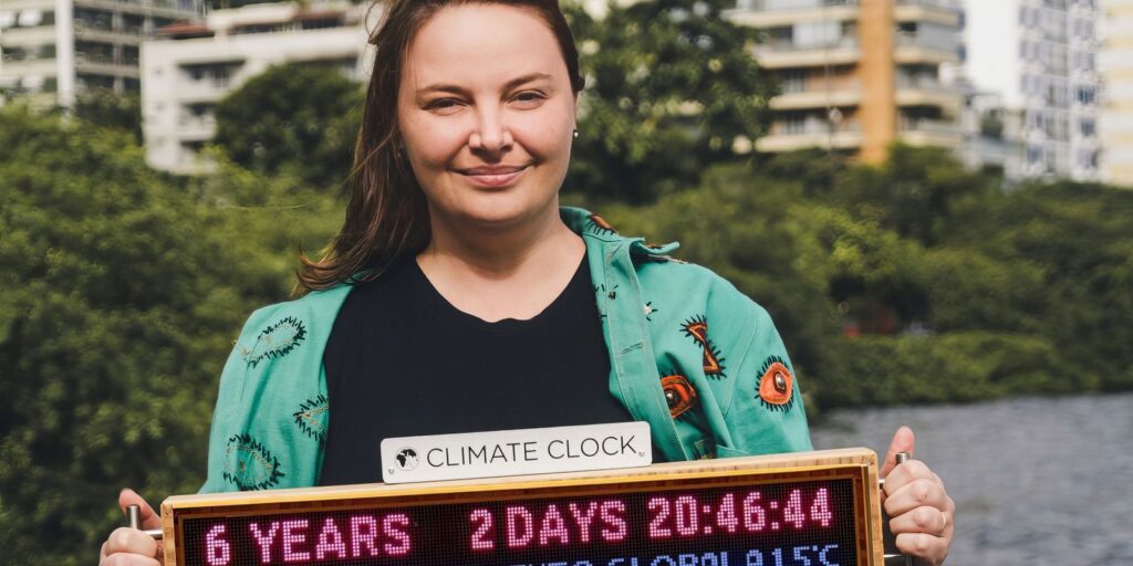 “Literalmente a gente tem esse controle do tempo nesse relógio por conta das nossas emissões. Ele é um relógio climático, não é um relógio comum. Ele não marca que horas são”, disse Natalie Unterstell sobre o efeito do equipamento que ganhou.