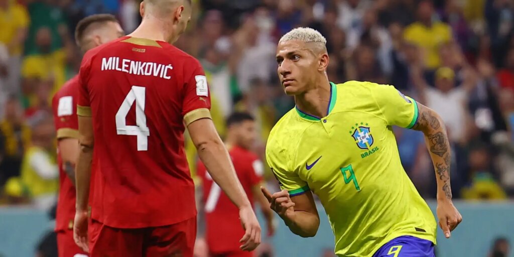 Contando com o faro de gol do atacante Richarlison, o Brasil derrotou a Sérvia por 2 a 0, nesta sexta-feira (24) no Estádio de Lusail, em seu primeiro jogo pelo Grupo G da Copa do Catar. Com este resultado, a seleção brasileira lidera a chave com o mesmo número de pontos da Suíça, que tem um saldo de gols pior.![]()
