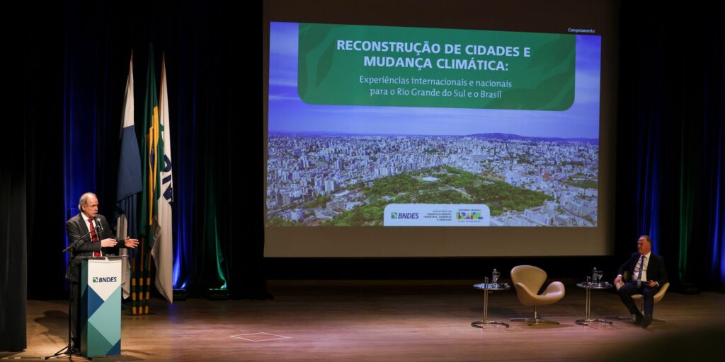 O presidente do BNDES enfatizou esforços do banco público para a reconstrução do Rio Grande do Sul, com financiamento subsidiado para custeio de empresas e investimentos. “Sem Estado não tem solução. O mercado sozinho não vai reconstruir.”