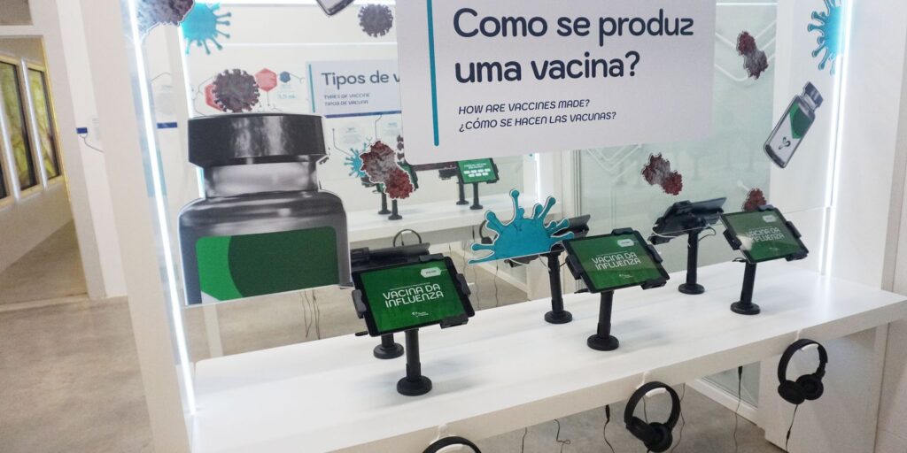 Há ainda conteúdos educativos para explicar o significado de termos científicos relacionados à vacina; jogos e um cinema 3D que permite ao visitante uma viagem pelo corpo humano. Na sala imersiva, é retratada a história de como é viver uma pandemia. Todo o museu tem acessibilidade para todos os públicos. O investimento nas obras do museu foi de R$ 13 milhões.