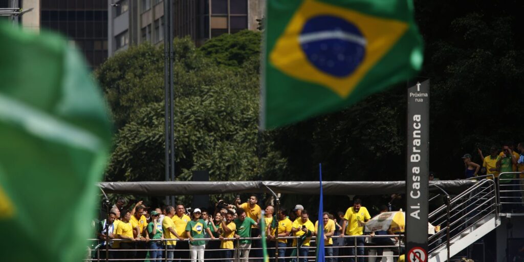 Simpatizantes del expresidente Jair Bolsonaro se concentraron en la tarde del domingo (25) en la avenida Paulista de São Paulo. Con camisetas amarillas y banderas brasileñas e israelíes, llegaron al encuentro en autobuses con matrículas del interior de São Paulo y de otros estados.