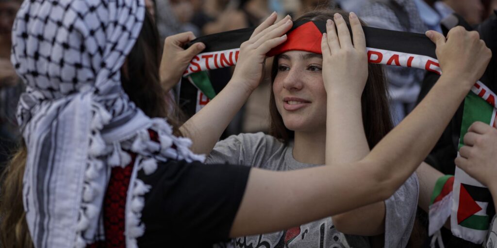 “Estamos sofrendo há mais de 75 anos [desde a criação do estado de Israel, em 1948] uma colonização brutal, uma limpeza étnica. Eu mesma sou filha de um sobrevivente da Nakba [catástrofe] de 1948. Meu pai tinha 13 anos, na época, foi um dos 800 mil expulsos naquele momento, violentamente. A aldeia dele é uma das mais de 500 destruídas [para dar lugar a Israel]”, disse.