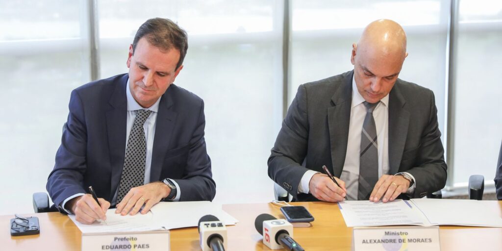 O presidente do Tribunal Superior Eleitoral (TSE), ministro Alexandre de Moraes, e o prefeito do Rio de Janeiro, Eduardo Paes, assinaram nesta terça-feira (12), na sede do órgão, em Brasília, documento que cria o Museu da Democracia (Mude), a ser instalado na capital fluminense.