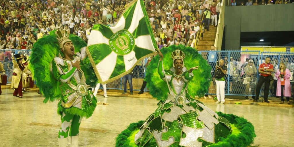 Depois da verde e branca, a Paraíso do Tuiuti entra no sambódromo às 22h. A escola vai contar a curiosa chegada dos búfalos à Ilha de Marajó, sua relação com o comércio de especiarias e o espaço de destaque que esses animais passaram a ocupar na cultura local.