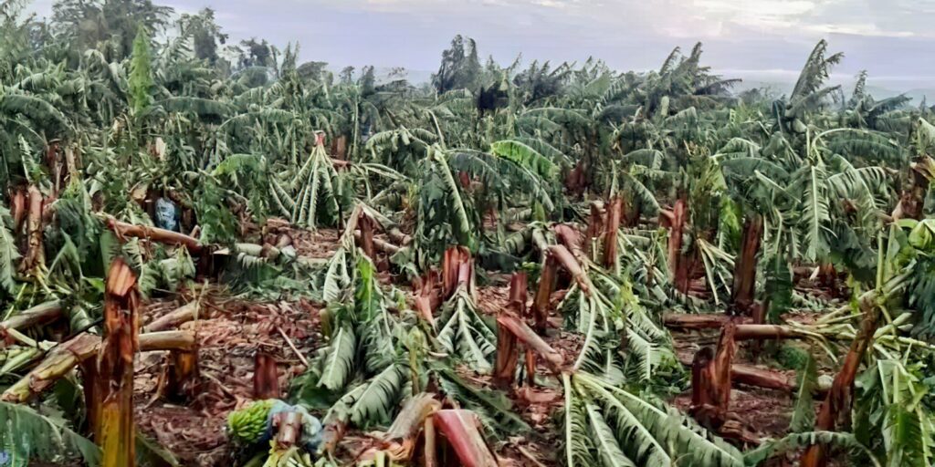 Um fenômeno meteorológico chamado downburst devastou plantações de banana na região do Vale do Ribeira, em São Paulo, após gerar ventos de 125 km/h. O episódio ocorreu na última terça-feira (13) e afetou principalmente o município de Sete Barras.
