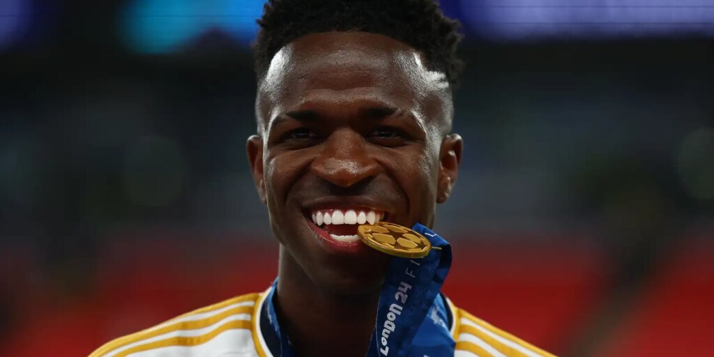 O atacante do Real Madrid Vinícius Jr. colocou-se em forte disputa para ganhar a Bola de Ouro de melhor jogador do mundo e aumentar sua crescente coleção de troféus depois de marcar em outra final da Liga dos Campeões, no sábado (1º).
