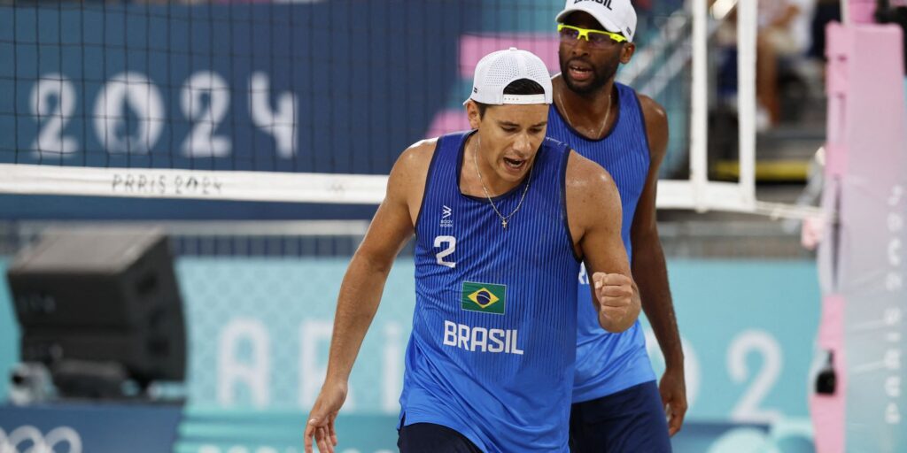 Os brasileiros Evandro e Arthur Lanci avançaram para as oitavas de final do torneio de vôlei de praia dos Jogos Olímpicos de Paris (França) após derrotarem os canadenses Schachter e Dearing por 2 a 0 (parciais de 21/13 e 21/16) nesta quarta-feira (31).